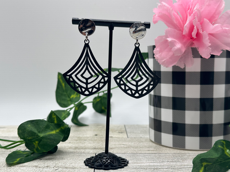 Black Wood Chandelier Shape with Stainless Steel Studs Earrings